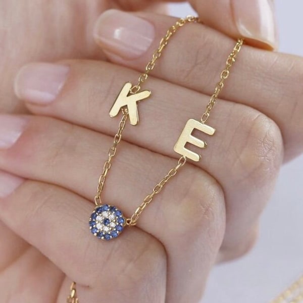 Solid Gold Evil Eye Necklace, Dainty 14K Gold Necklace, Minimal, Bridal Necklace, Tiny Ivory Evil Eye, Solid Gold Evil Eye, Women Day Gift (1.2k) Sale Price $176.47 $ 176.47 $ 220.59 Original Price $220.59 (20% off) FREE shipping Add to Favorites. The pendant's 18k gold-plated finish is set with cubic zirconia, and you can choose between five of our best-selling chains to set it on 9ct Gold Moonstone Evil Eye Pendant By Blj Jewellery